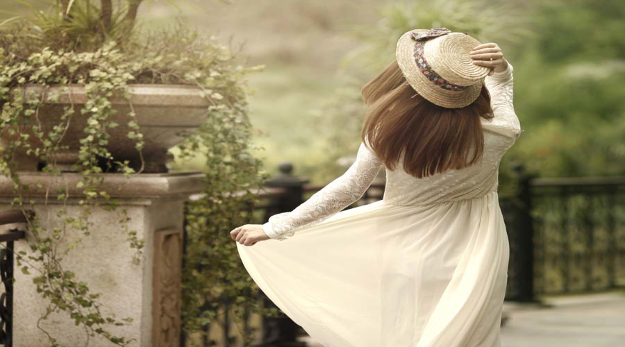 美女白色连衣裙正面
